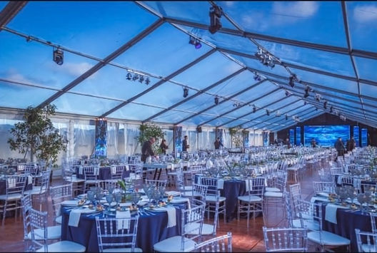 Carpa transparente y piso para la celebración de los 60 años de Gianni Uruguay, a demás colocamos carpas para cocina y mesas
